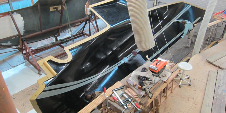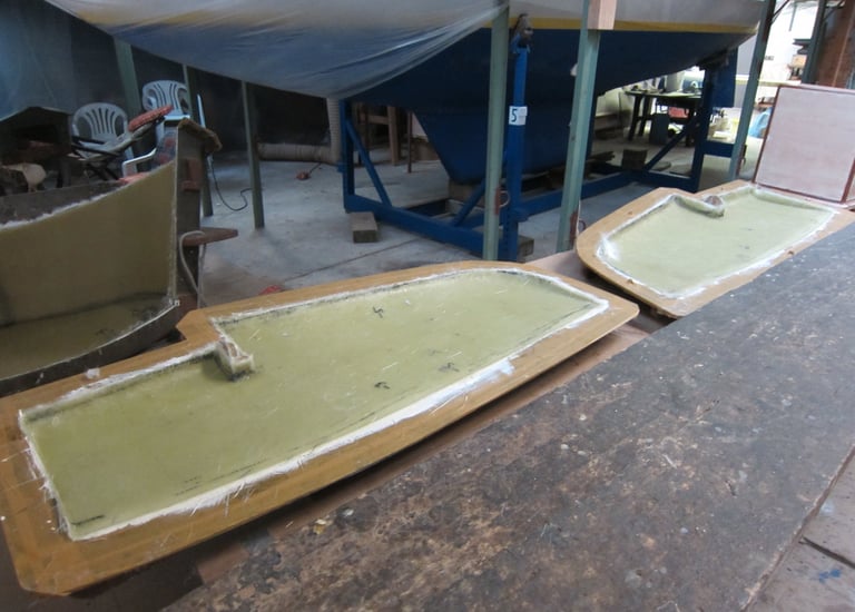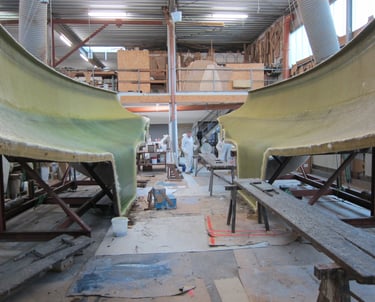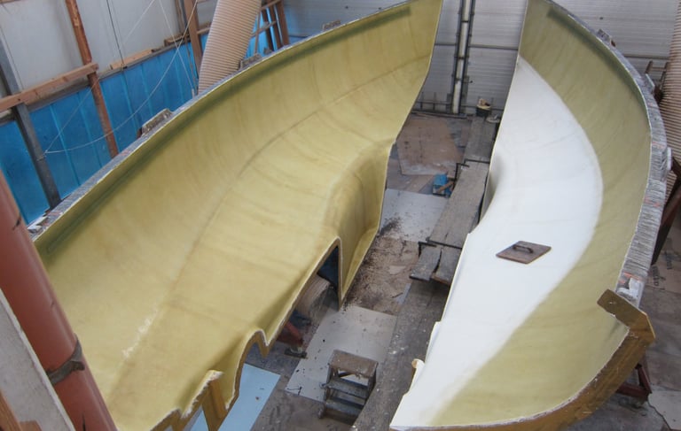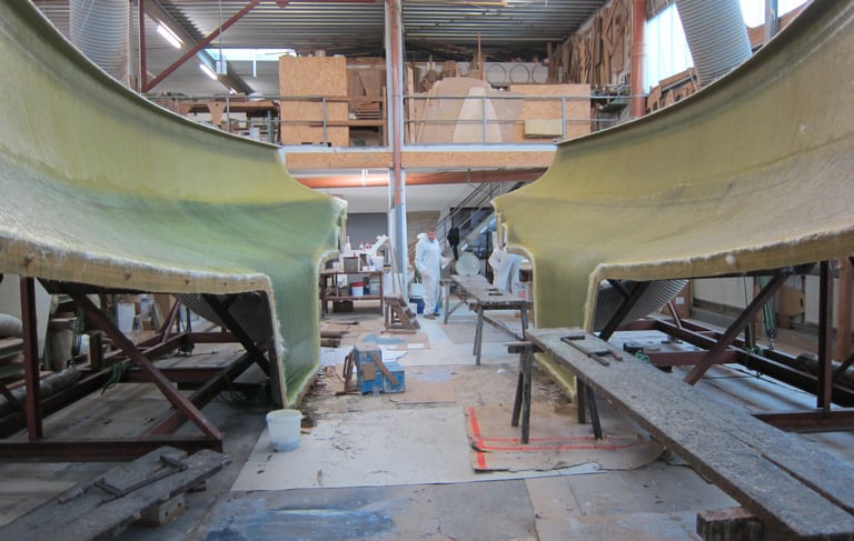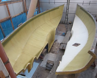 Laminierte Rumpfschalen kurz vor der Zusammenführung