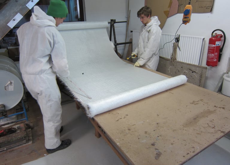 Vorbereitung und Zuschnitt der GFK Matten
